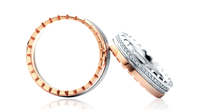 로즈와 화이트의 사랑스러운 배색을 가진 이 반지는 초콜릿 모양의 포인트조차 로맨틱한 제품입니다.반지의 원을 따라 반복되는 초콜릿 모양은 사랑이 가진 무한한 가능성을담고 있습니다.